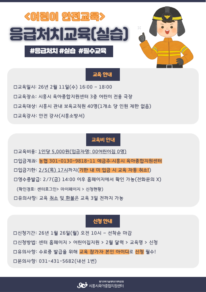 - 입금기한: 2/5(목) 17시까지(기한 내 미입금 시 교육 자동 취소)