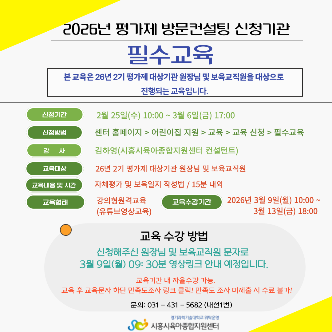 [26년 2기 평가제 대상기관-원장님 및 보육교직원]평가제 방문컨설팅 필수교육(자체평가 및 보육일지 작성법)