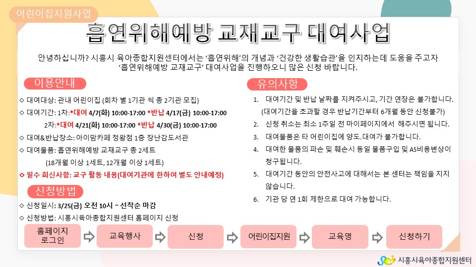 4월(2차) 1기관 모집 - 유아 흡연위해예방 교재교구대여