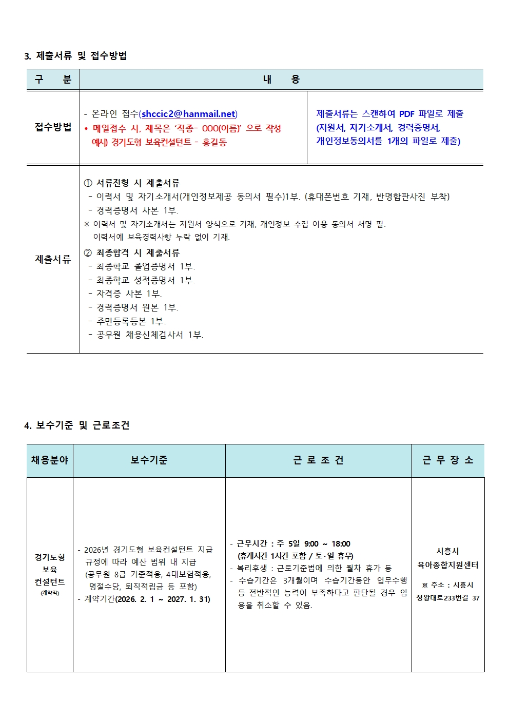 [센터] [채용]시흥시육아종합지원센터 직원 채용(경기도형보육컨설턴트)공고