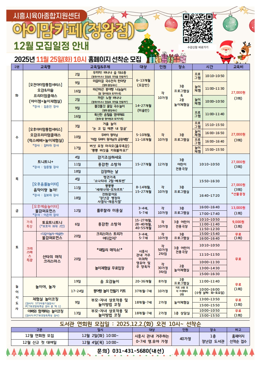 [센터] 아이맘카페 정왕점 12월 부모자녀 프로그램 일정 안내