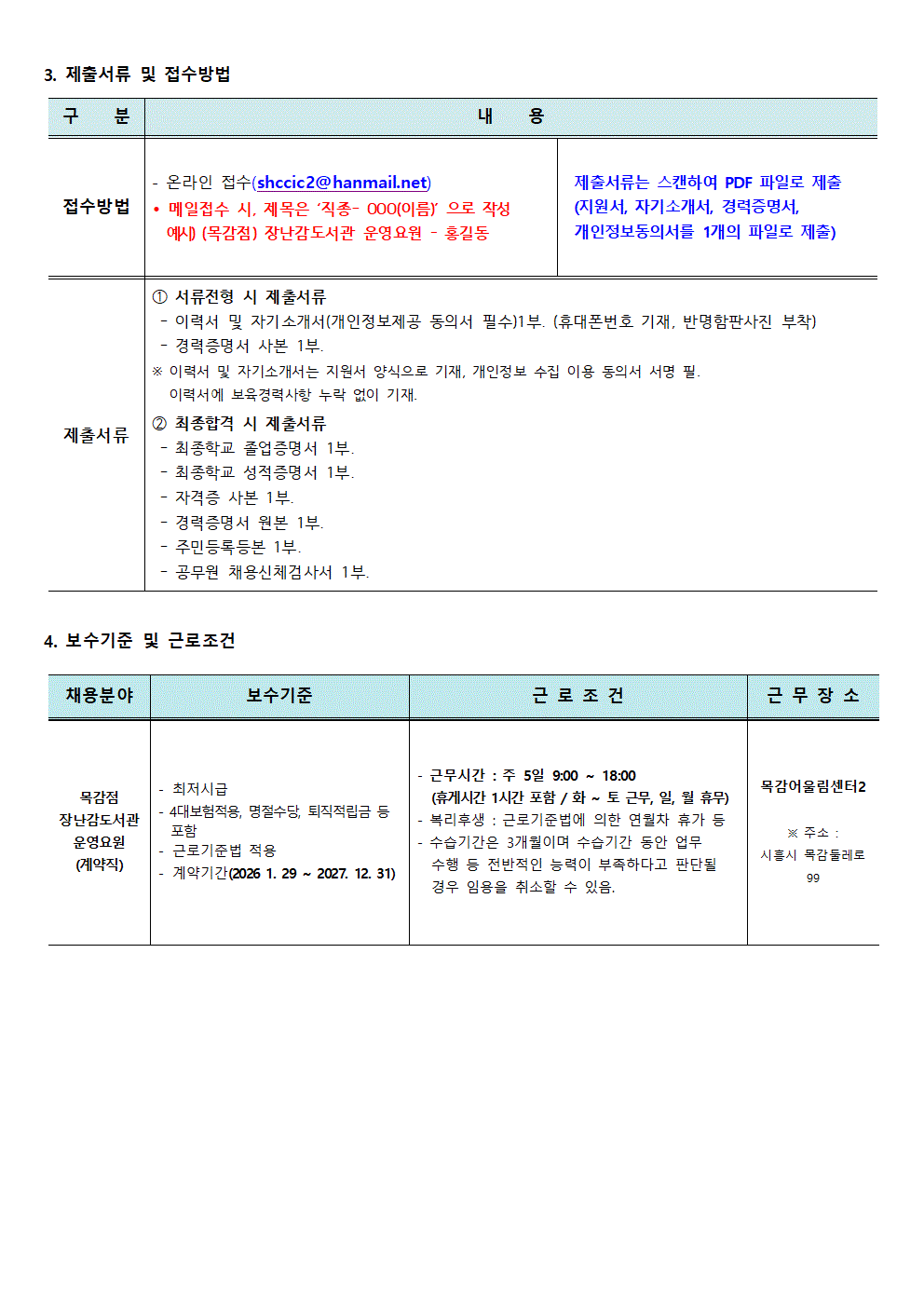 [센터] [채용]시흥시육아종합지원센터 직원 채용(목감점 - 장난감 운영요원)공고