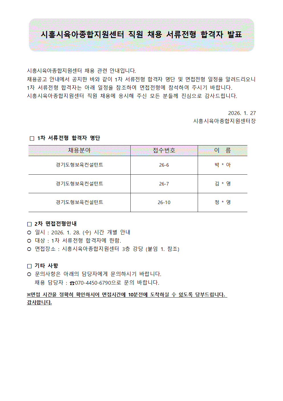 [센터] [채용]시흥시육아종합지원센터 직원 1차 서류전형 합격자 공고(경기도형보육컨설턴트)