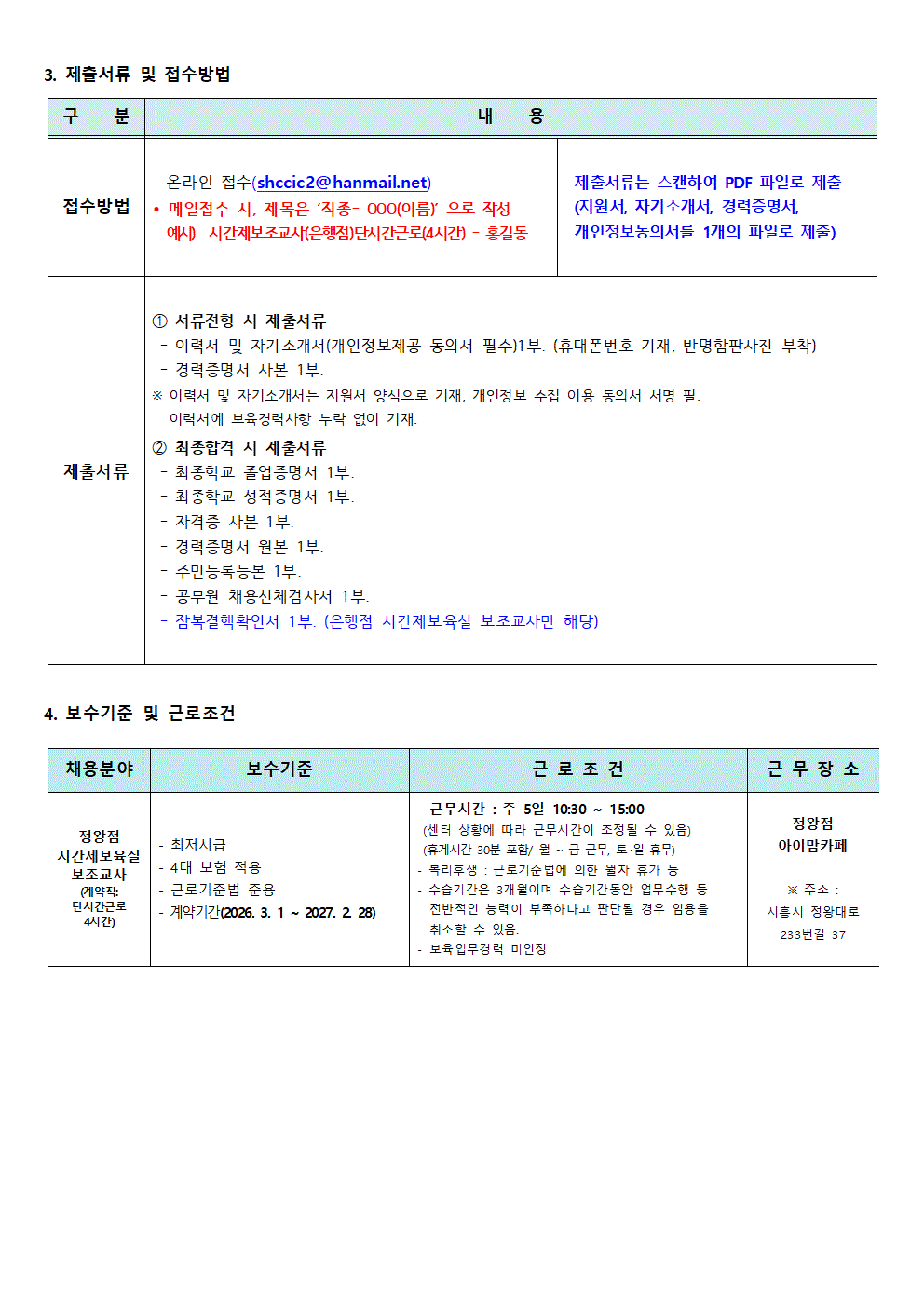 [센터] [채용]시흥시육아종합지원센터 직원 채용(정왕점- 시간제보조교사)공고