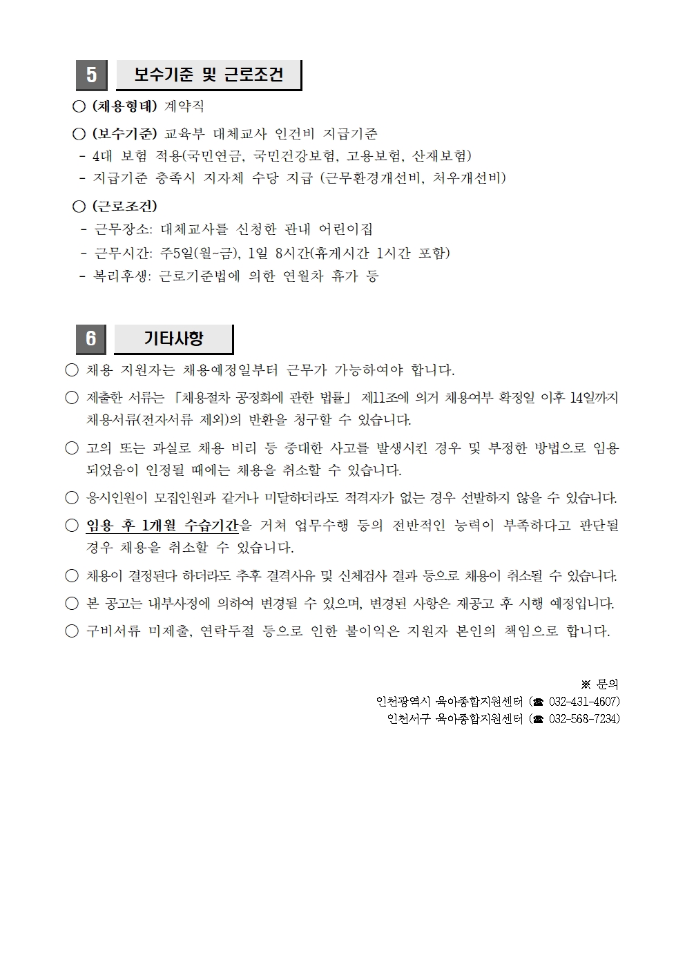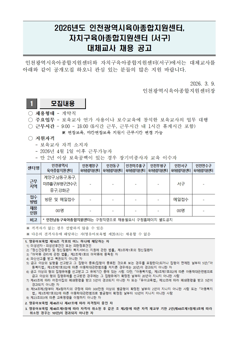[채용] 인천서구 육아종합지원센터 직원 채용 공고