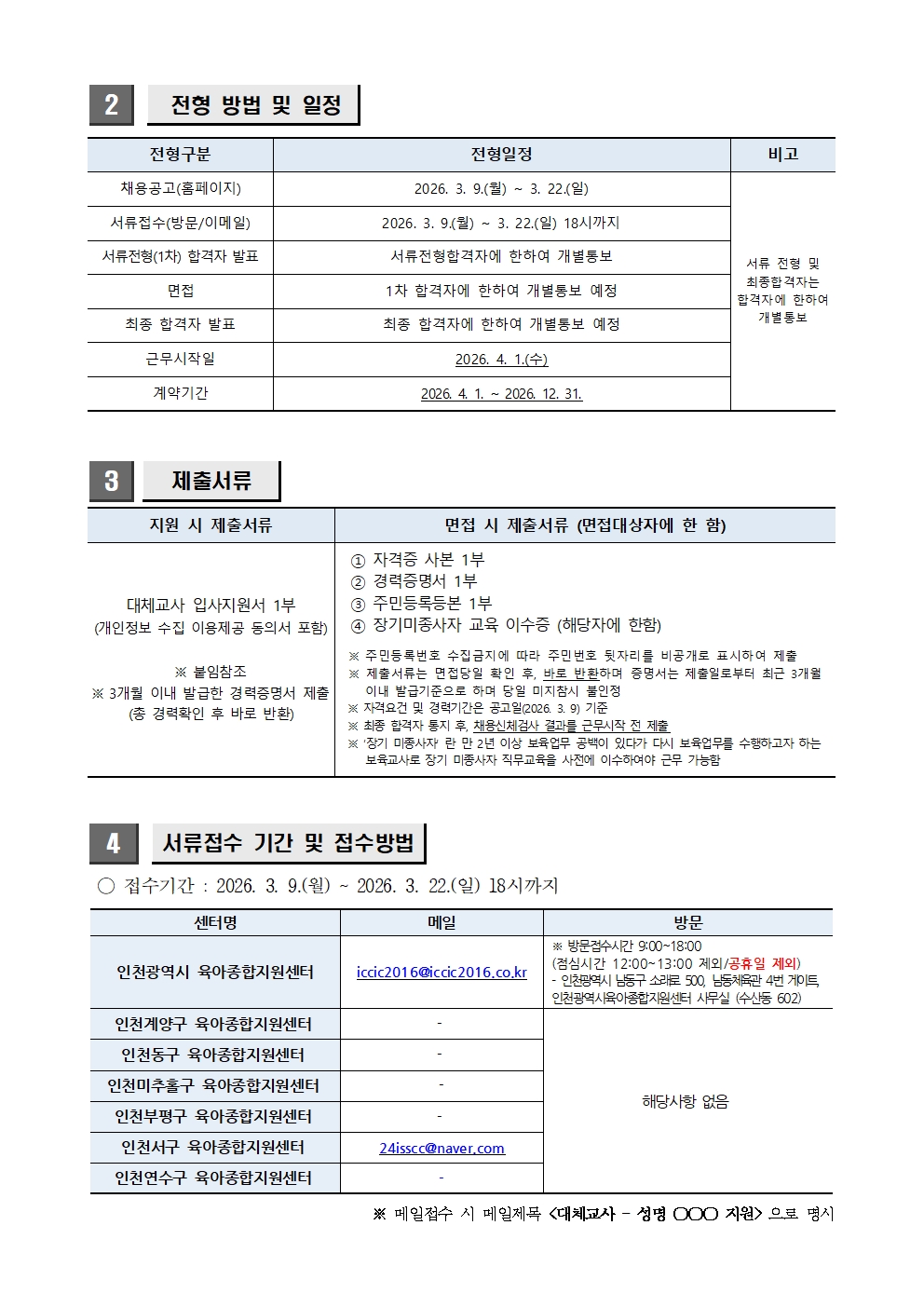 [외부] [채용] 인천광역시 육아종합지원센터 직원 채용 공고