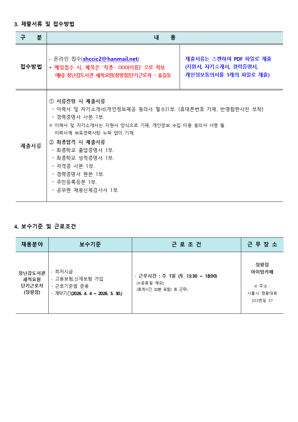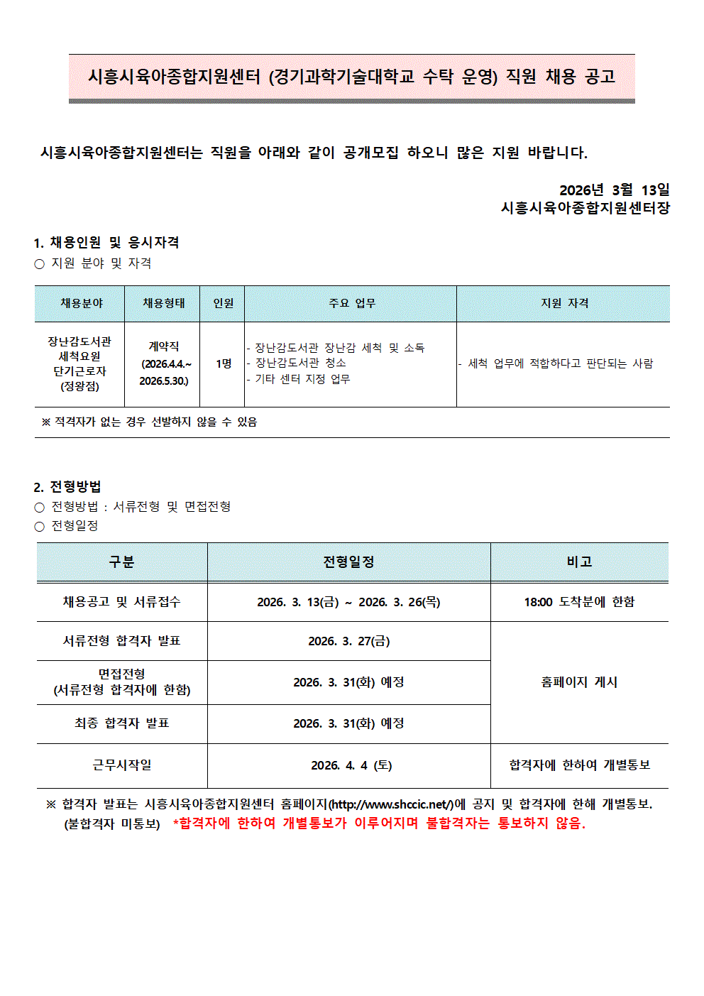 [센터] [채용]시흥시육아종합지원센터 직원 (장난감도서관 세척요원 - 정왕점 )채용 공고