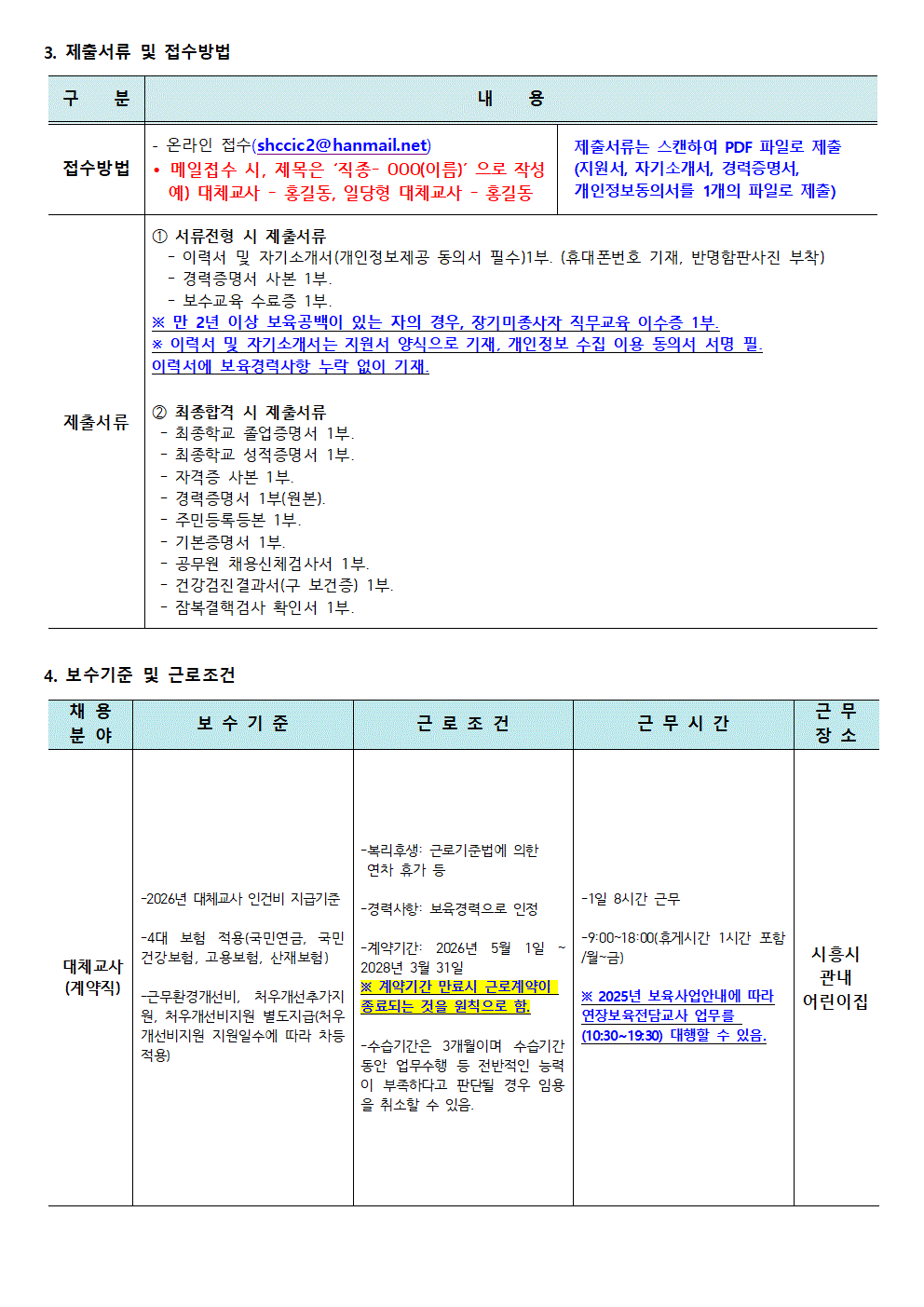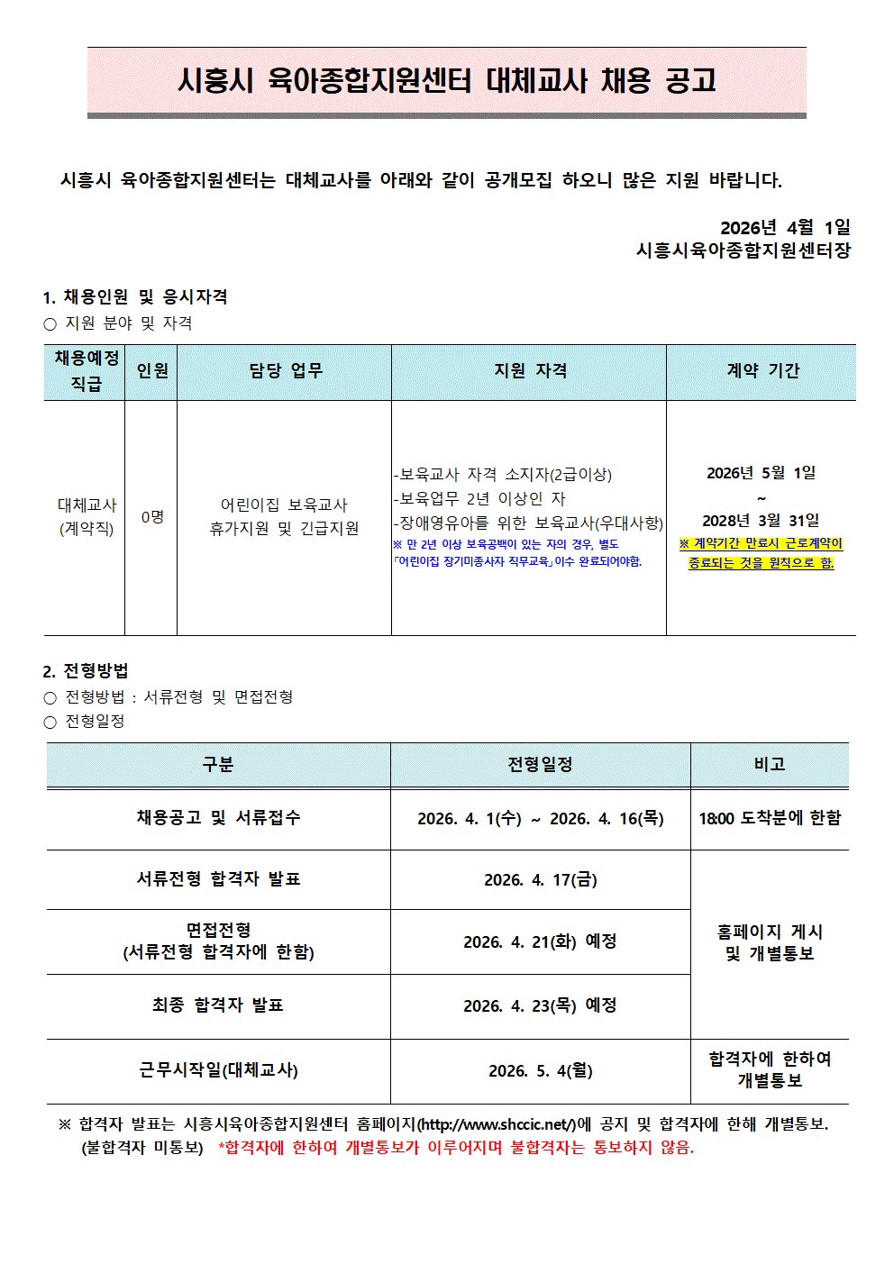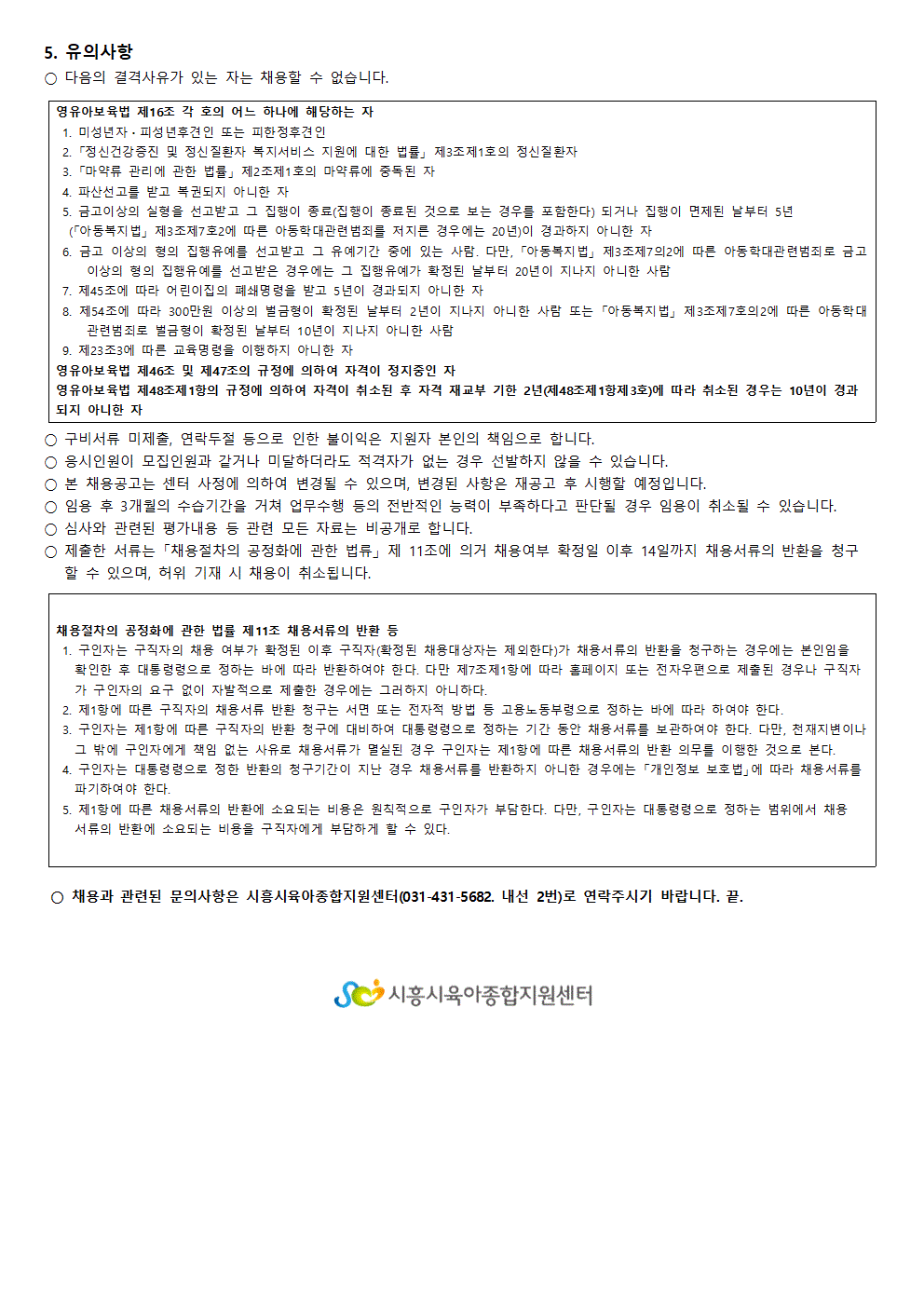 [센터] [채용]시흥시육아종합지원센터 직원(대체교사) 모집 공고