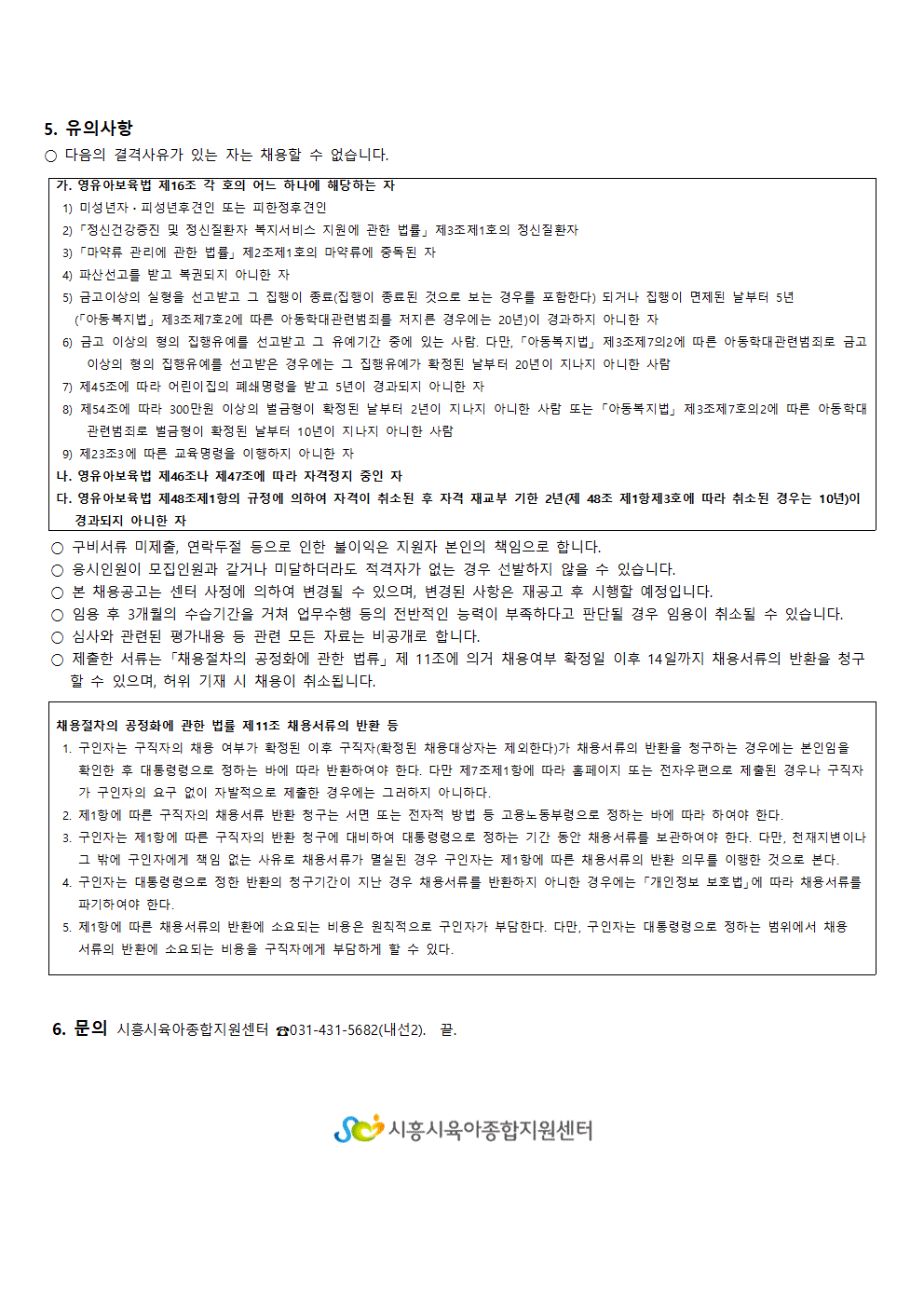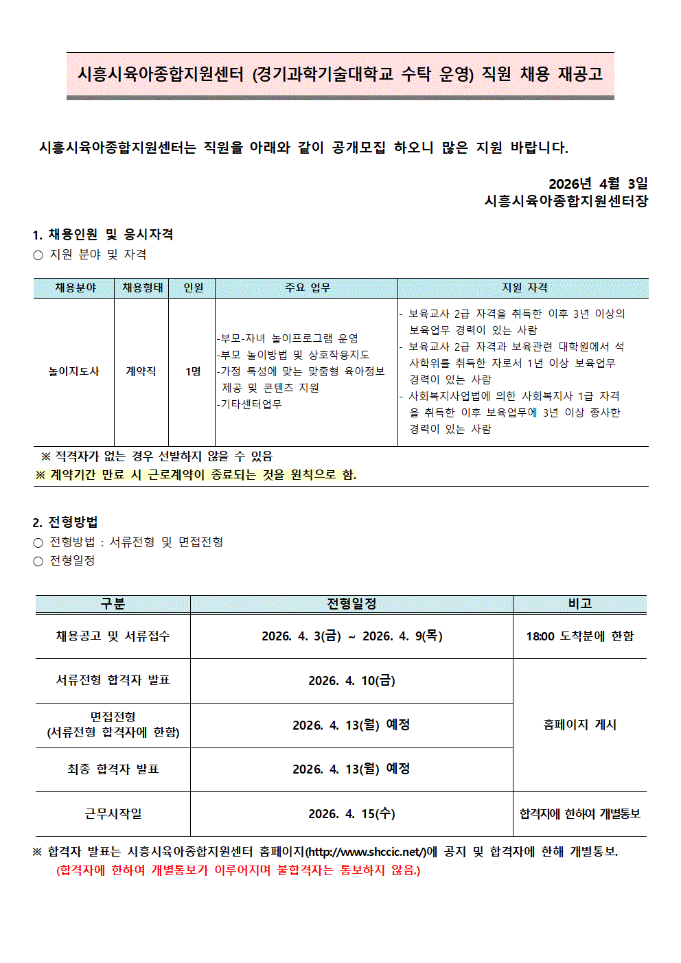 [센터] [채용]시흥시육아종합지원센터 직원 (놀이지도사)채용 재 공고