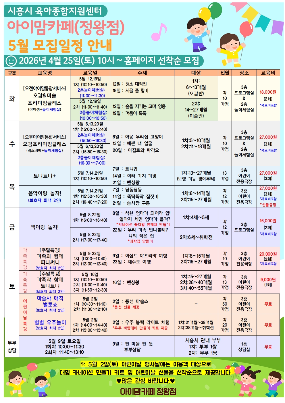 [센터] 5월 아이맘카페(정왕점) 모집일정