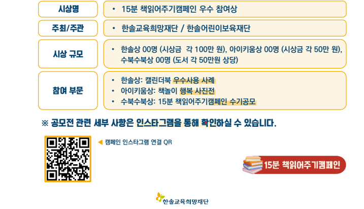 '15분 책 읽어주기 캠페인'을 진행합니다.