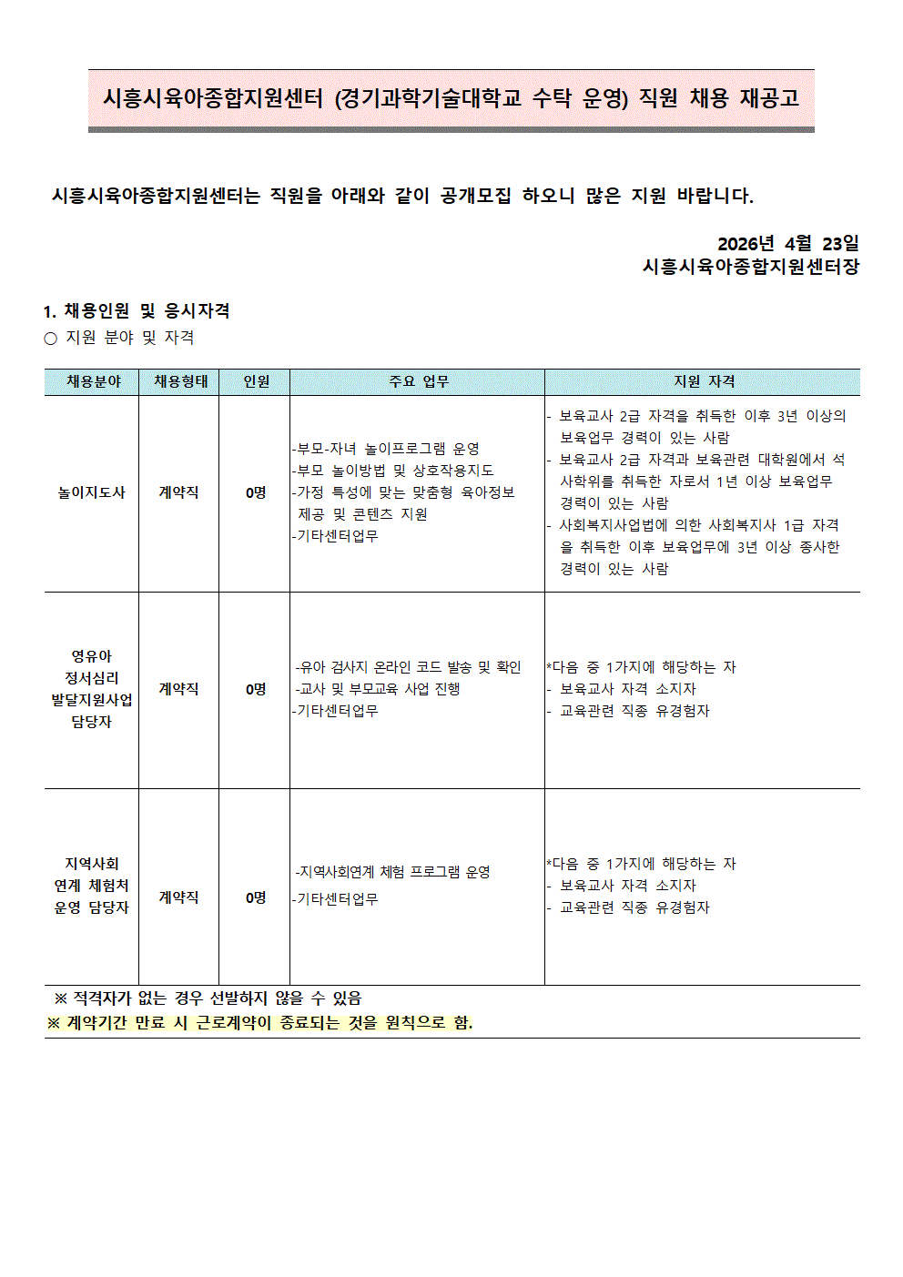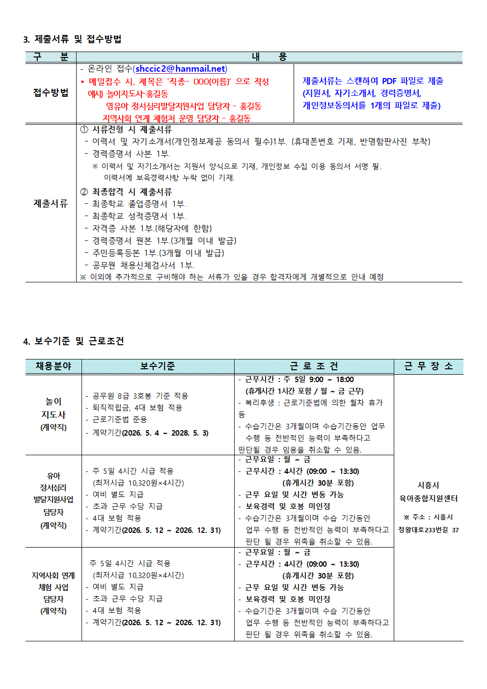 [센터] [채용]시흥시육아종합지원센터 직원 (놀이지도사,영유아정서심리발달지원사업담당자,지역사회연계체험처 운영 담당자)채용 공고