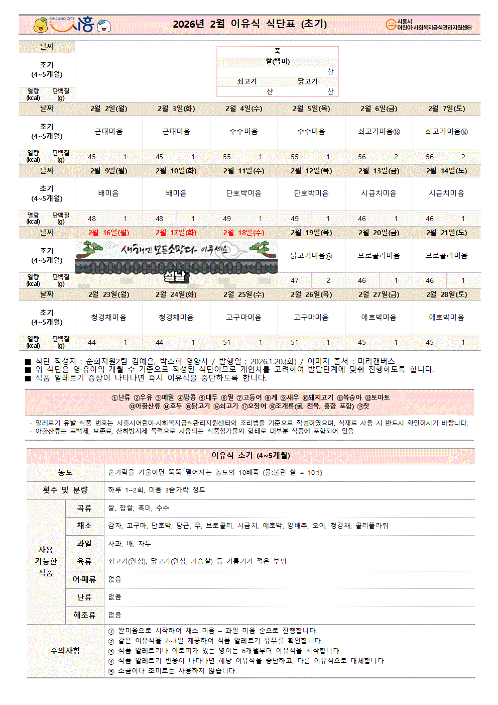 2026년 2월 영아 식단