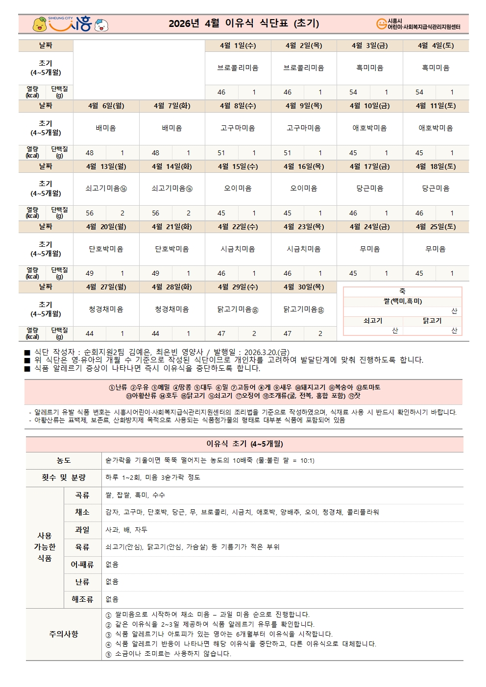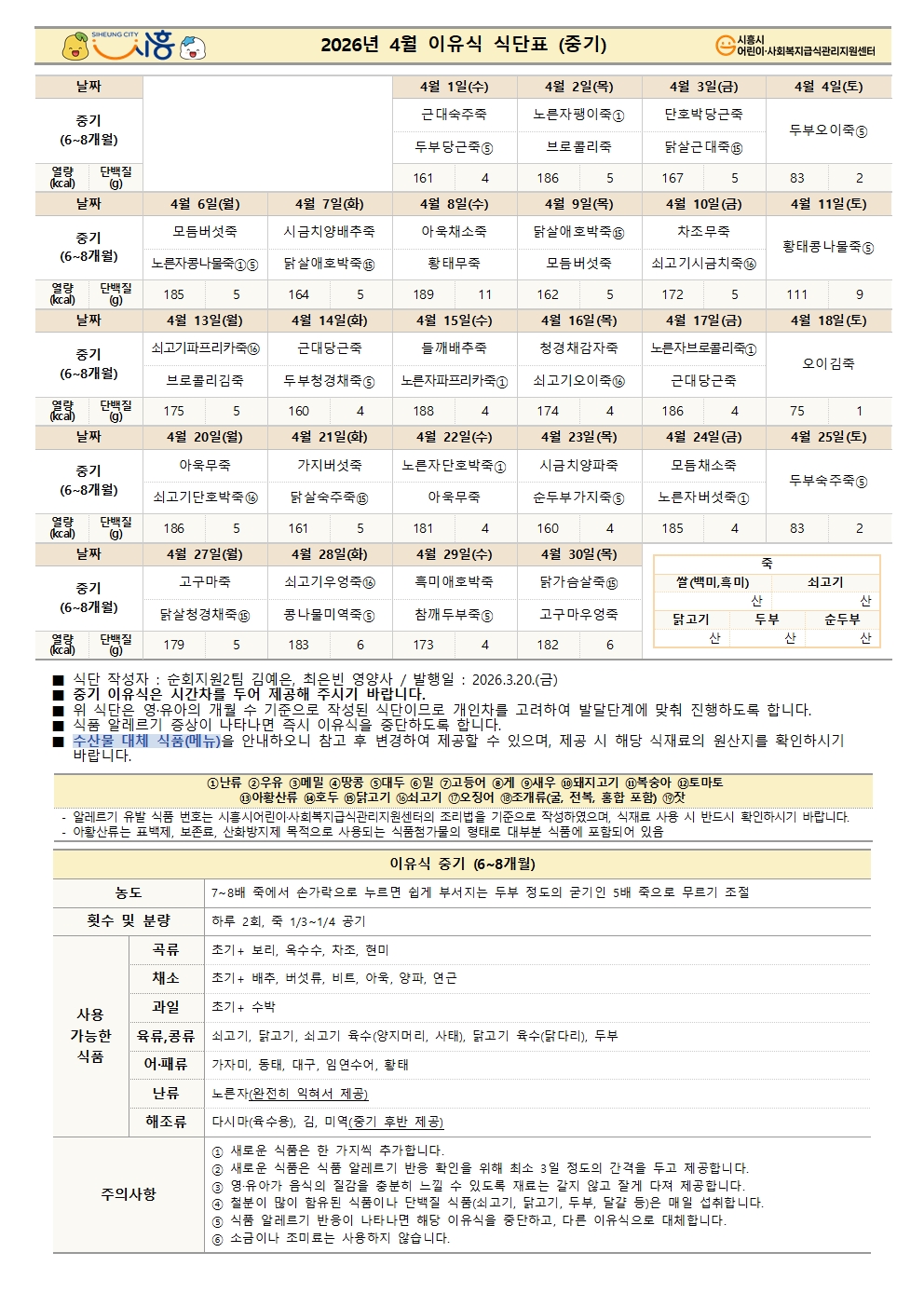 [2026년 4월] 이유식 식단표 (초·중·후기).hwp