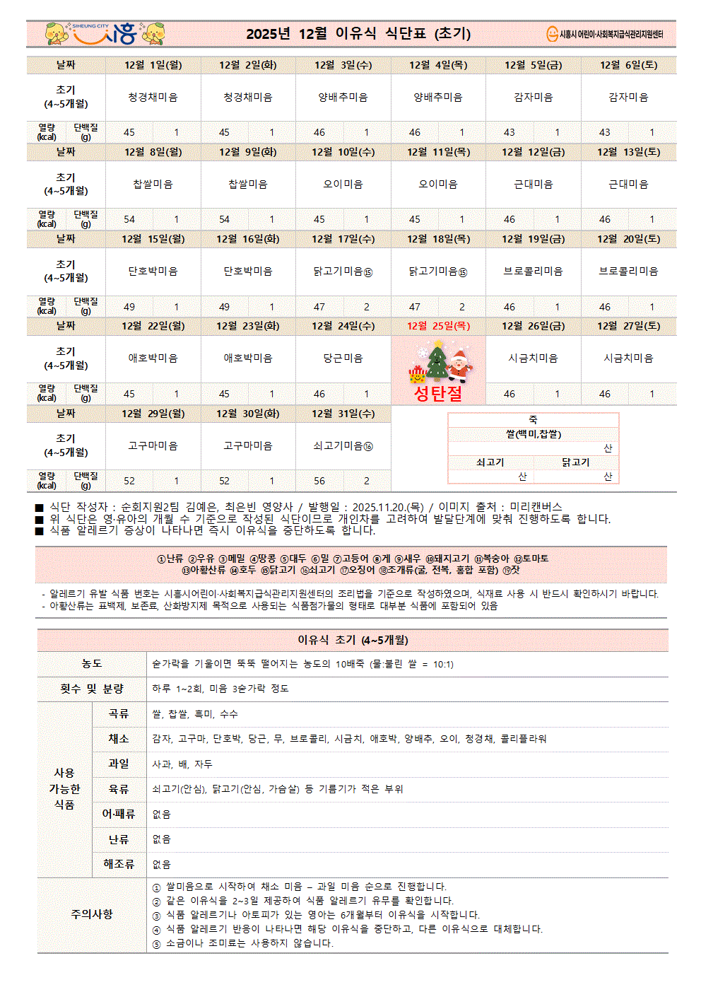 2025년 12월 영아식단