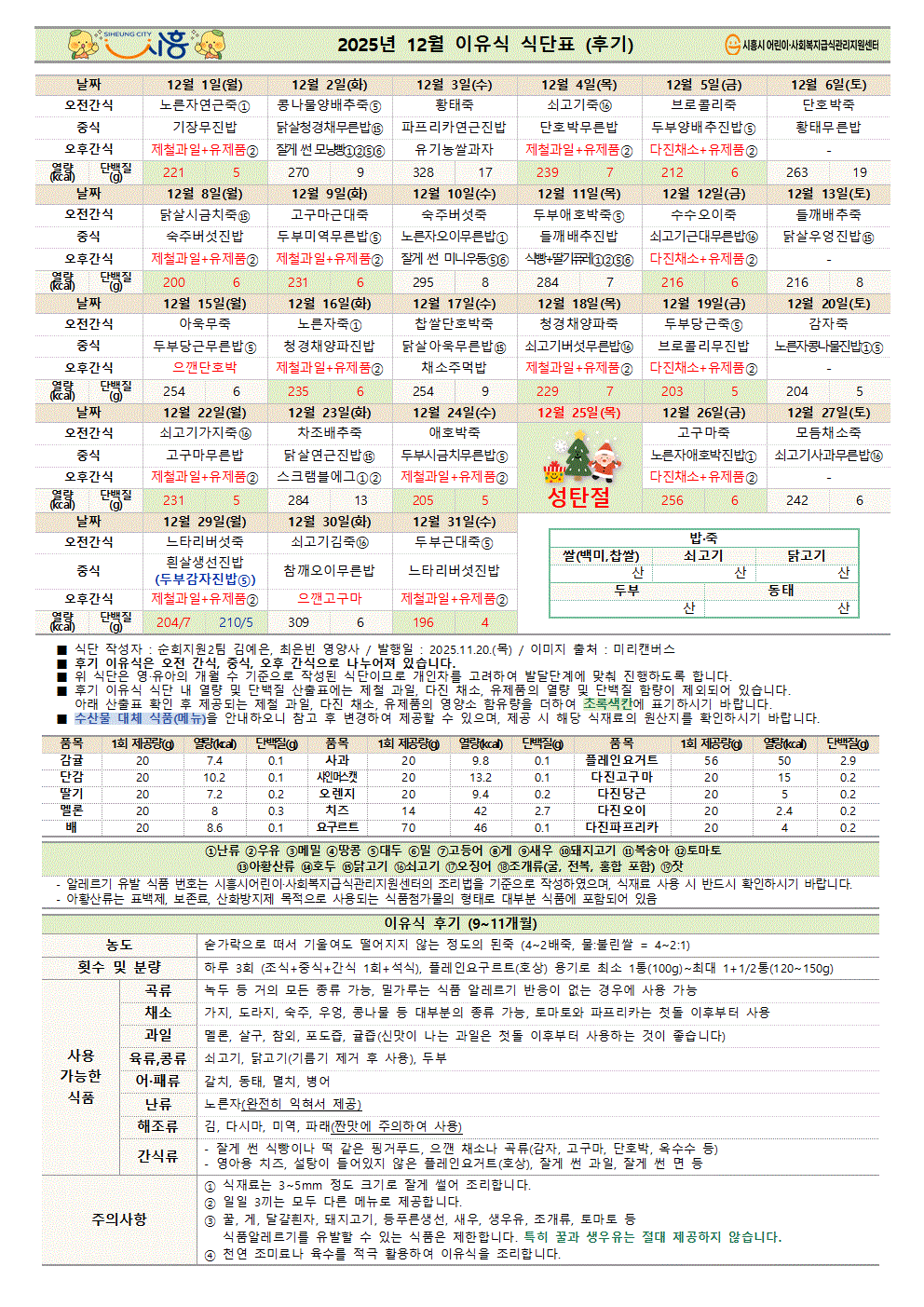 2025년 11월 이유식 식단