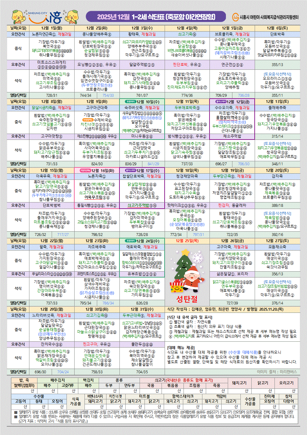 2025년 12월 유아식단