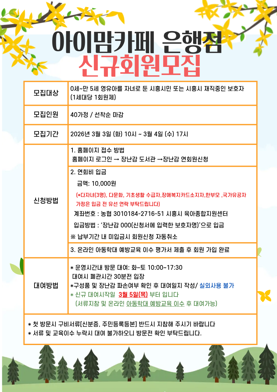 [은행점] 2026년 3월 장난감도서관 연회원 신규모집
