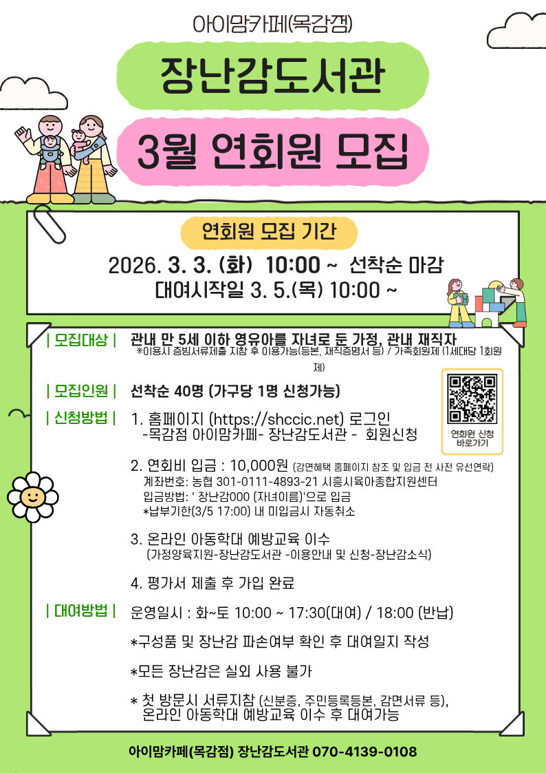 [목감점] 2026년 3월 장난감도서관 연회원 신규모집