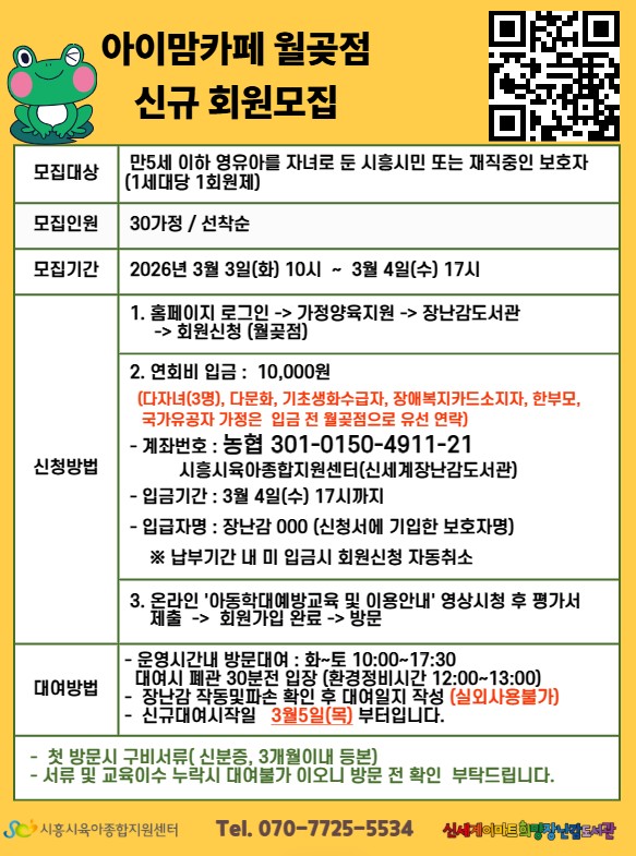 [목감점] 2026년 3월 장난감도서관 연회원 신규모집