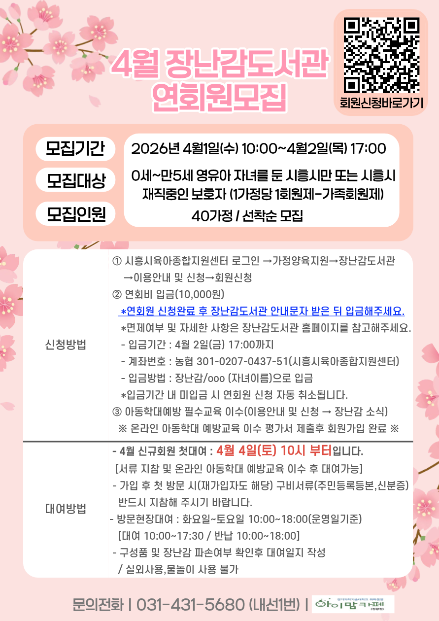 (정왕점)2026년 4월 장난감도서관 연회원 신규모집