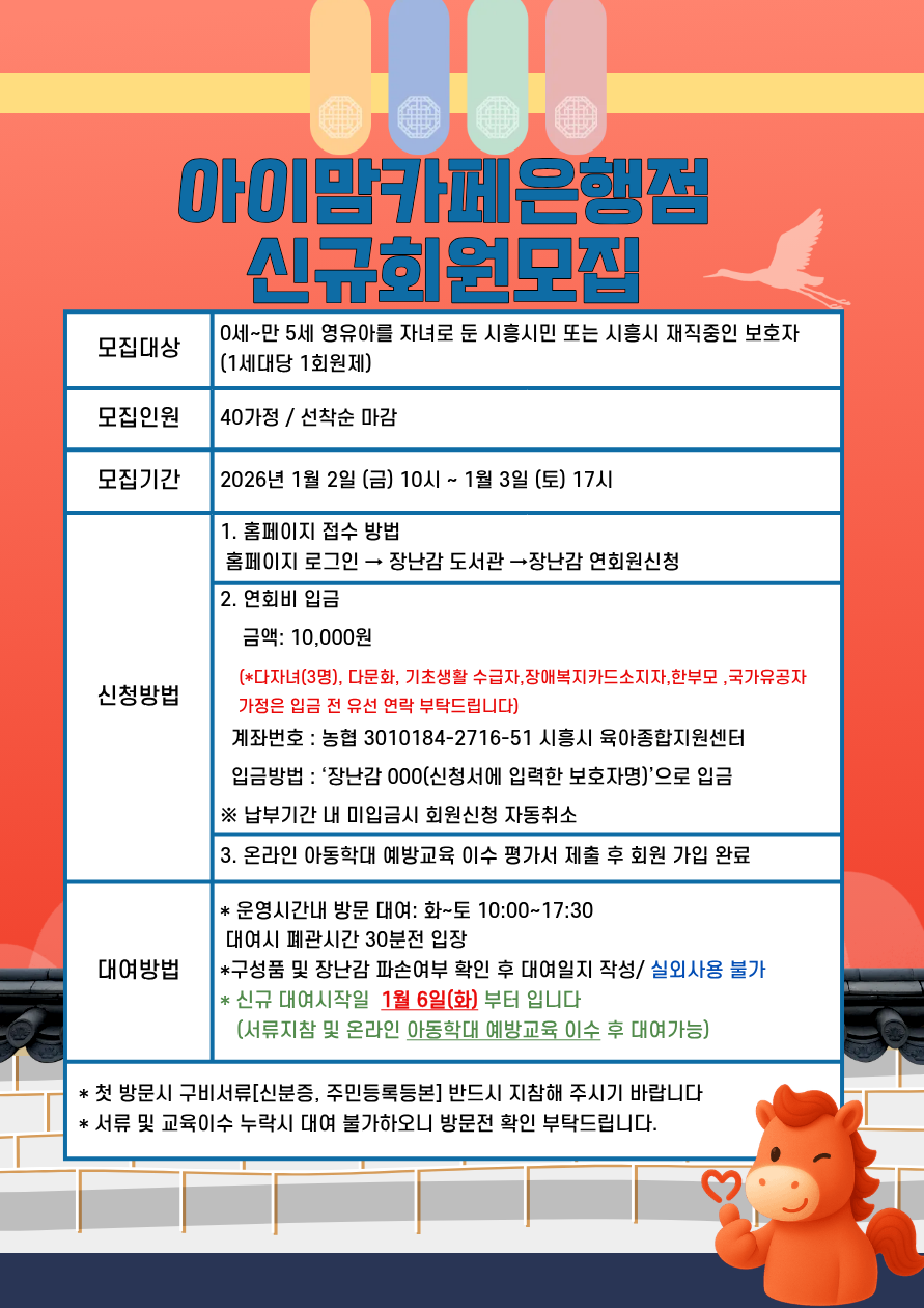 [목감점] 2026년 1월 장난감도서관 연회원 신규모집