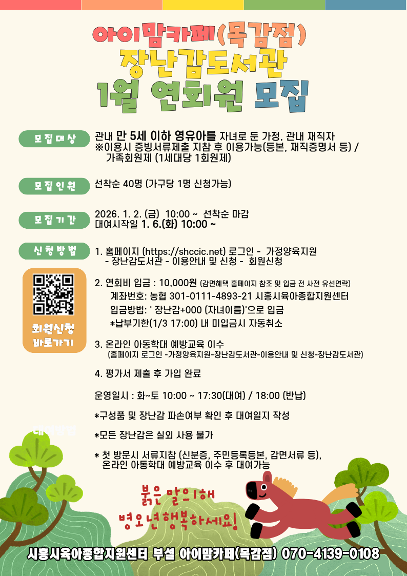 [목감점] 2026년 1월 장난감도서관 연회원 신규모집