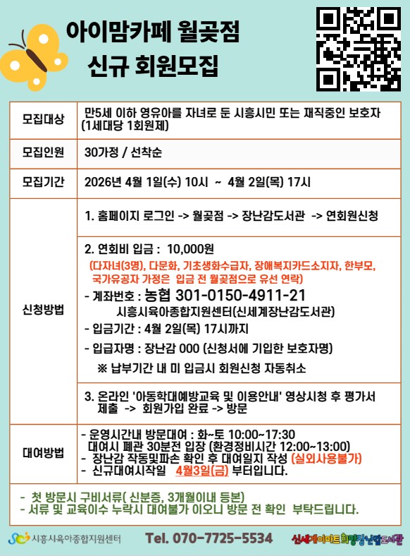 [월곶점] 2026년 4월 장난감도서관 연회원 신규모집