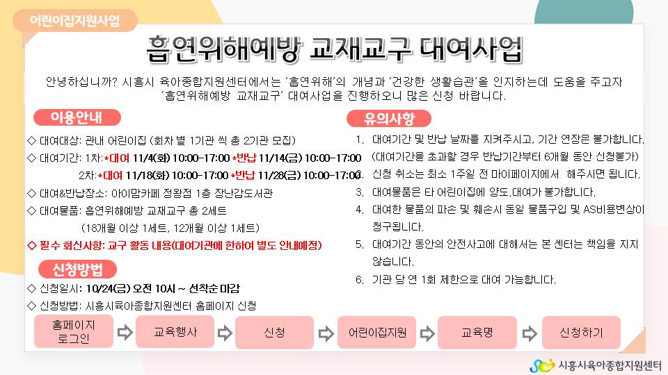 ¡Ú 11¿ù(1Â÷) 1±â°ü ¸ðÁý ¡ÚÀ¯¾ÆÈí¿¬À§ÇØ¿¹¹æ ±³Àç±³±¸ ´ë¿©±â°£ [´ë¿©: 11.4(È) ~ ¹Ý³³: 11.14(±Ý) ±îÁö] |
