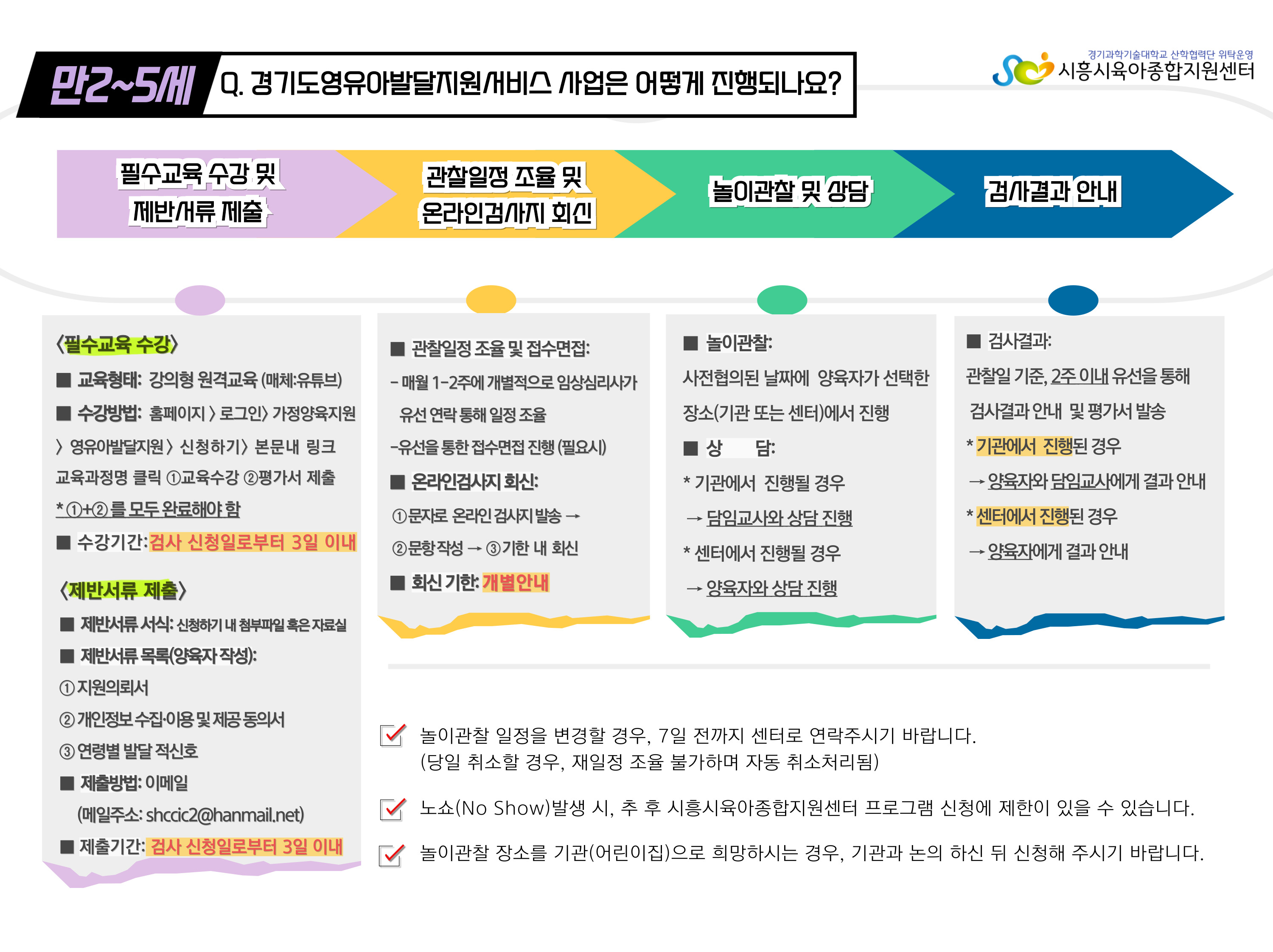 (제반서류 메일 전송 시, 제목은 경기도영유아발달지원서비스 신청 서류 (신청자:ooo(영유아이름)) 으로 보내주시기 바랍니다.)