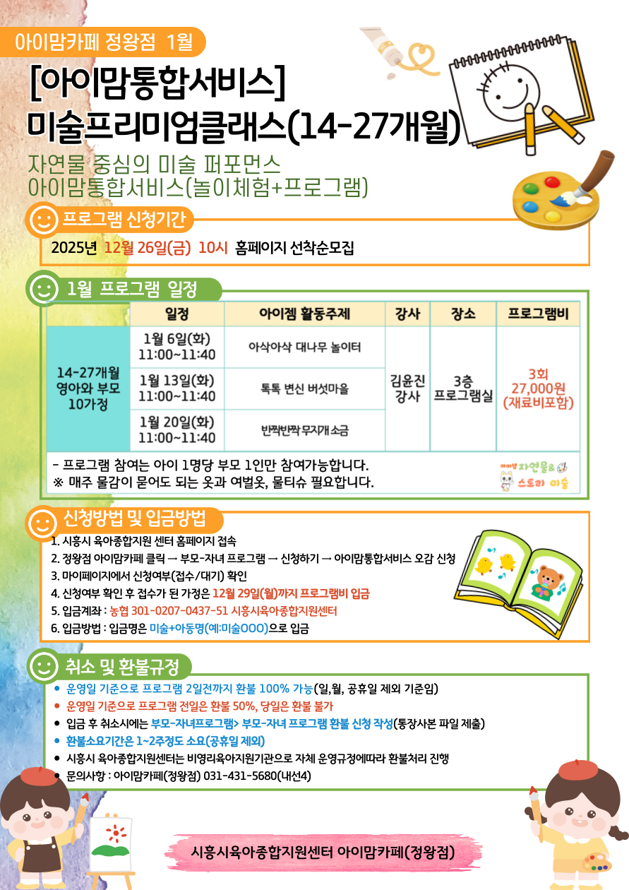 ■ 프로그램실 내에서 발생하는 사고 및 안전 문제에 대한 책임은 보호자에게 있음을 안내드립니다.