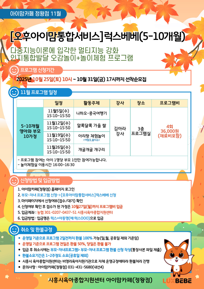 2. 프로그램 대상 개월수에 맞게 신청 부탁드리며 본 프로그램은 아이1명당 부모 1인 참여가능 합니다.