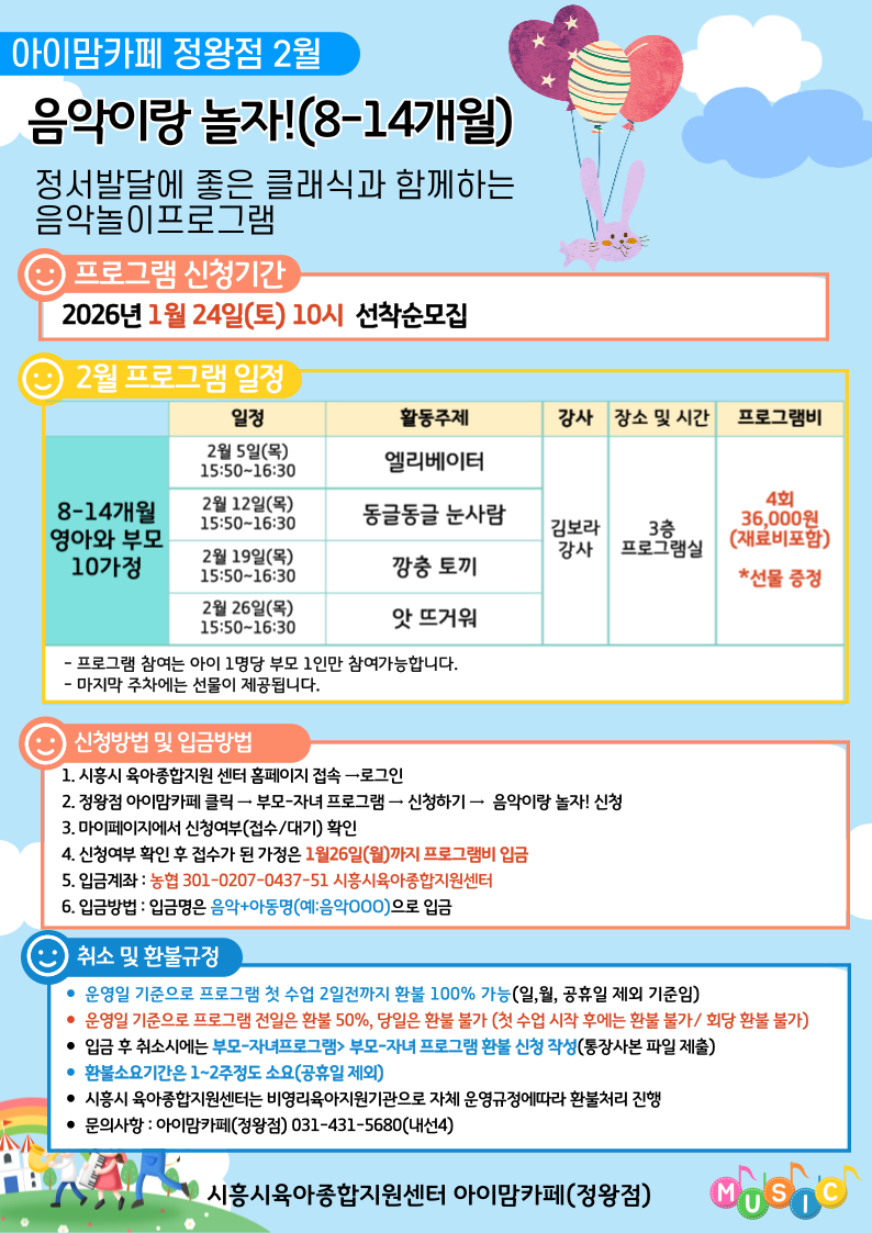 ■ 프로그램실 내에서 발생하는 사고 및 안전 문제에 대한 책임은 보호자에게 있음을 안내드립니다.
