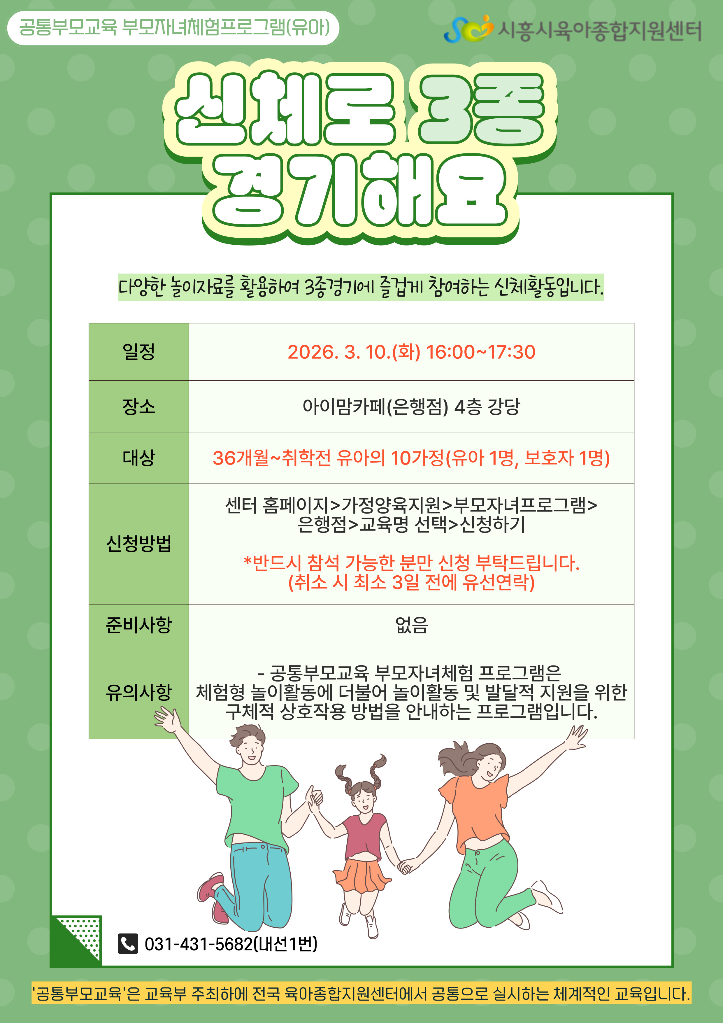 [유아 부모자녀체험프로그램] 신체로 3종 경기해요